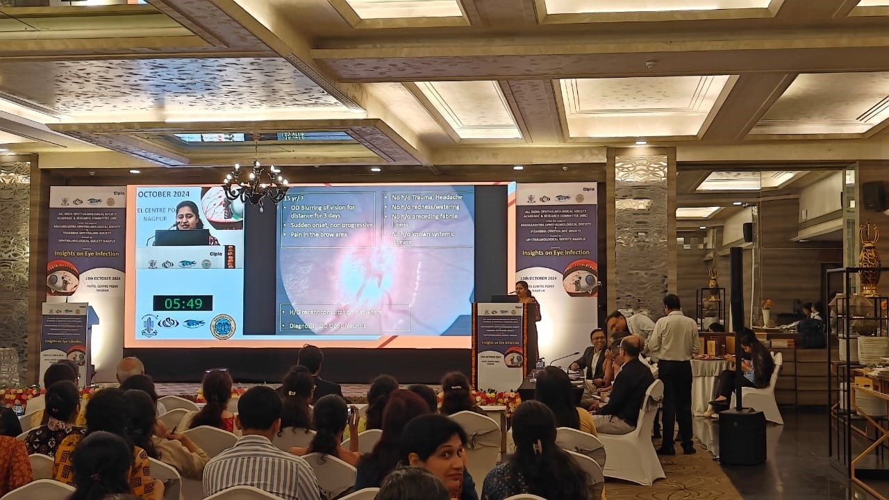 Dr Varada Gokhale was an Invited faculty for scientific program on’ Insight on eye infection’ on 13th Oct 2024 by All India ophthalmological Society Academic and research committee ( ARC) in association with Maharashtra ophthalmology Society, Vidarbha ophthalmology society and Ophthalmological society of Nagpur. Dr Varada had a case discussion on Hot disc, topic in retina and neuro-ophthalmology session.