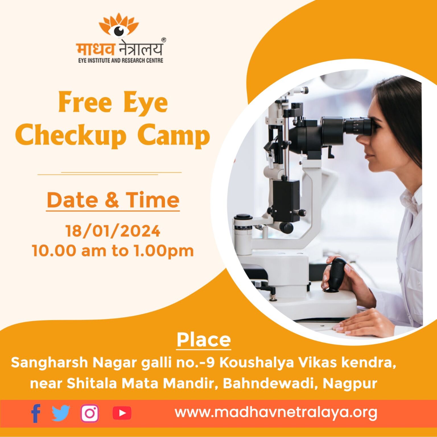 I was very nervous about my eye surgery. But Madhav Netralaya & Dr. Gokhale helped me, feel comfortable. A comfort I didn’t get at any other eye doctor in USA or in Nagpur Thank you for creating wonderful facility and having best eye surgery who give authentic advice and take care of you & your eyes with “precision” Hospital is very clean and outstanding. Staff behaviour is good, helping and outstanding.